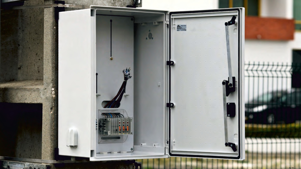 BRES enclosures are lighter than metal ones. This makes them quick and easy to install on walls or poles. You can add back or front fixing lugs for more flexibility. The doors open a full 180° and can swing left or right, which makes access simple. Their GRP build protects against rust, UV light, and extreme temperatures from –30 °C to +85 °C. Because of this, they need very little maintenance.