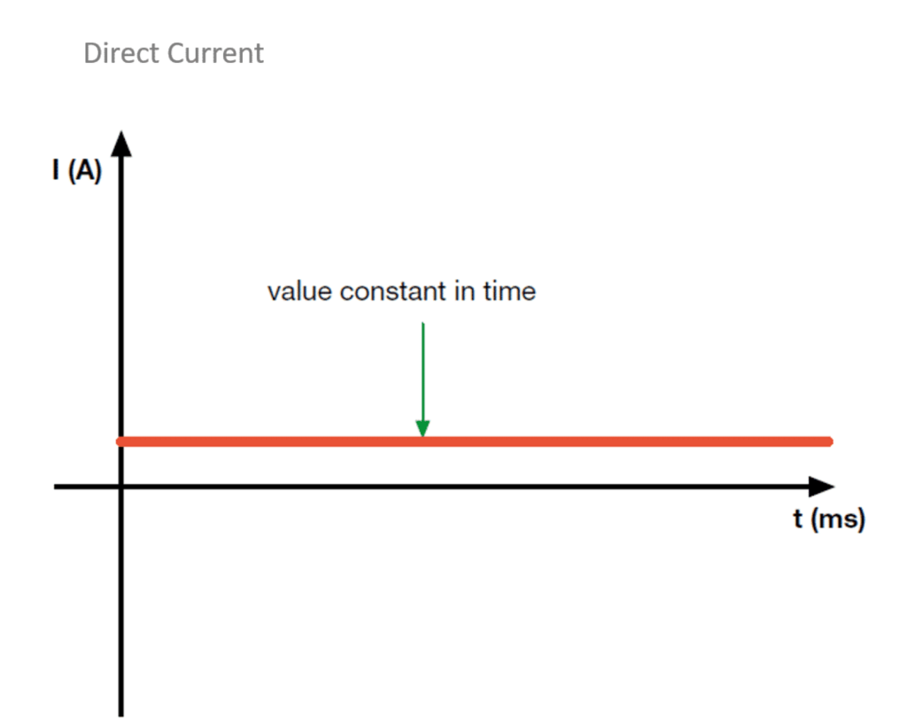 Direct Current (DC) flows in one constant direction, like the power from a battery.
